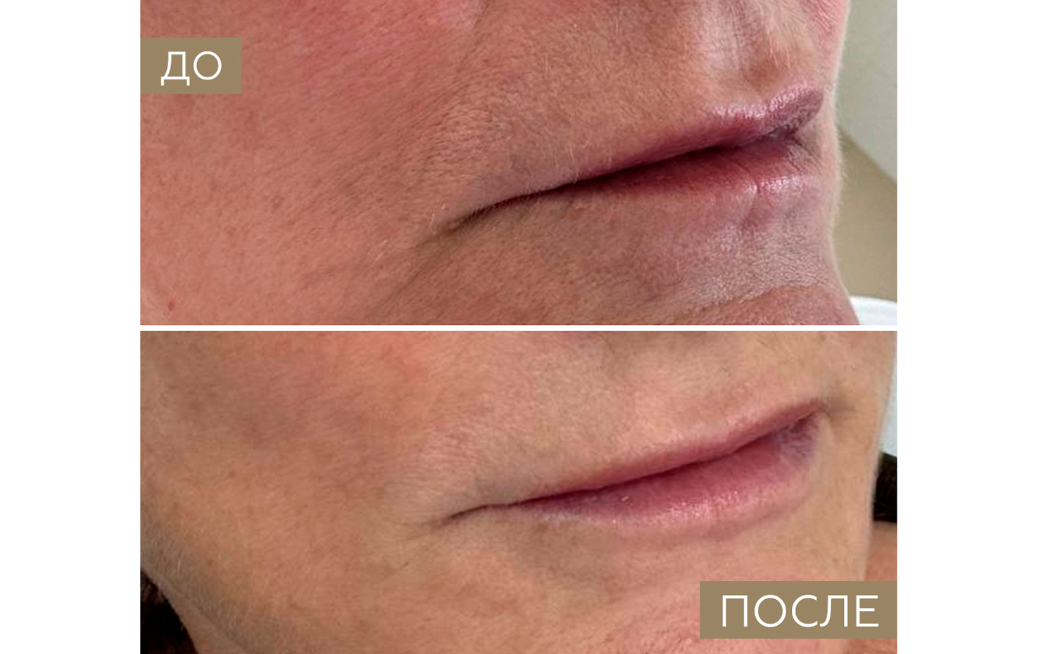 - Контурная пластика губ: иногда небольшие коррекции формы губ помогают рассредоточить взгляд и снизить явность кисетных морщин.